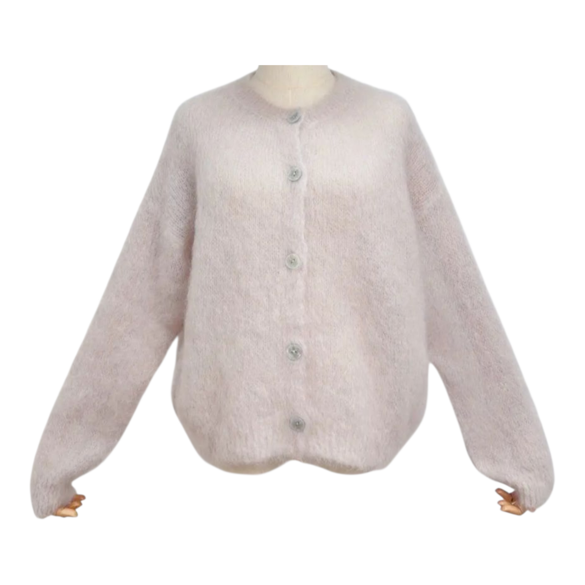 Ylellinen, pehmeä ja muhkea napillinen neuletakki. Valmistettu Italiassa laadukkaasta Kid mohair langasta. Sisältää 80% kid mohairia. Vastaa kokoa S-L.