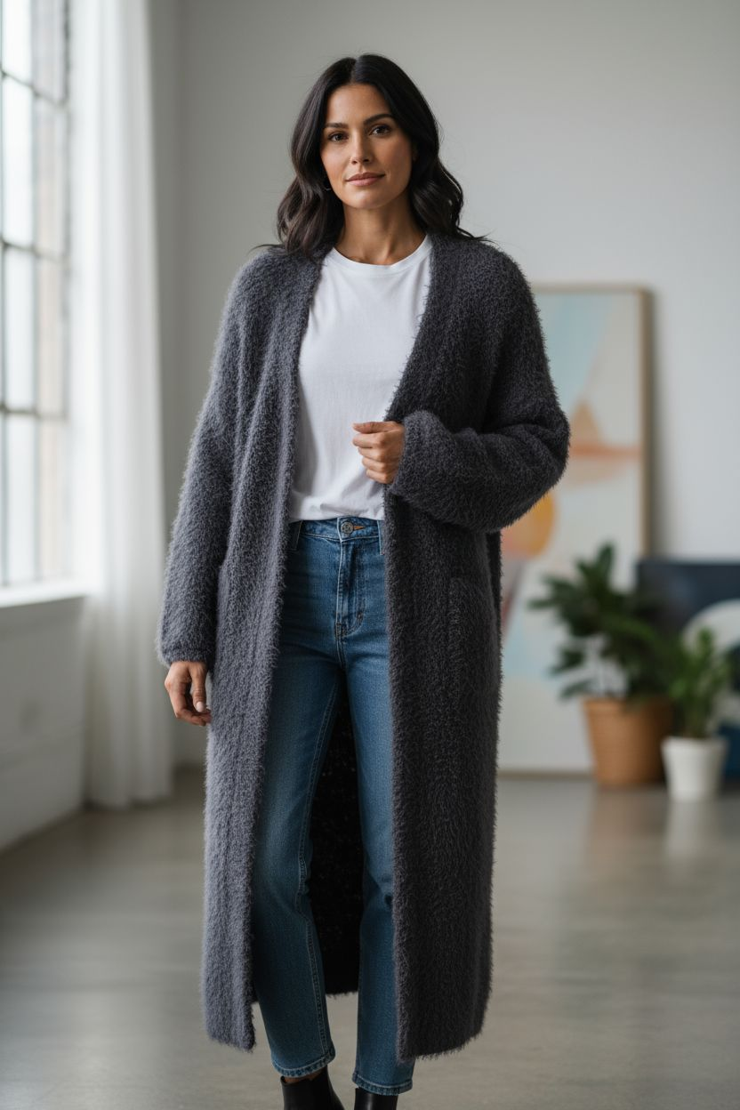 Ihanan lämmin ja pehmeä naisten pörrö neuletakki. Miellyttävä iholla, ei kutise. One size. Joustavaa materiaalia, sopii XS-L kokoiselle.